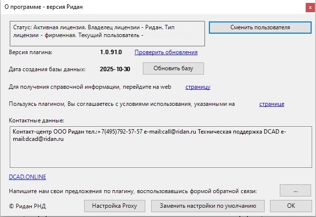 Для открытия окна необходимо на вкладке "DCAD" в группе "Сервис" нажать на кнопку "О программе" или набрать команду ABOUT_DCAD.